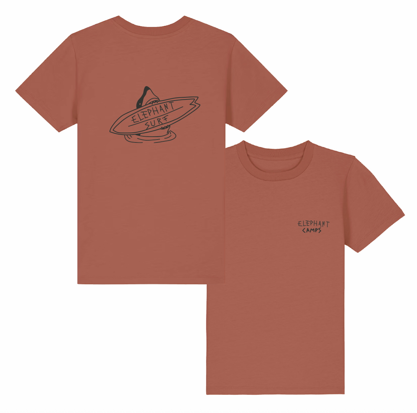 Wil je deze zomer een toffe surf- of skatelook aanmeten? Bestel dan alvast je Elephant Camps t-shirt online en je ontvangt deze bij aankomst op het kamp. Er zijn twee soorten: model SURF & model SKATE, en twee kleuren: Fraiche Peche (PEACH) & Heritage Brown (BROWN)​​​​​​​. Kies je model + kleur & geef je maat in, wij doen dan het nodige om jouw look compleet te maken!